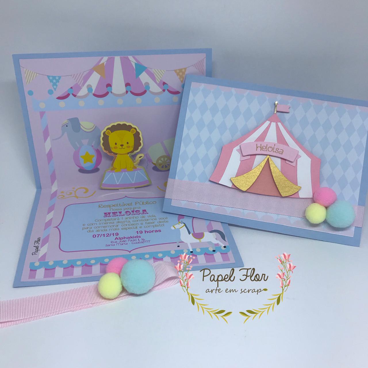 Convite pop up rosa – Circo